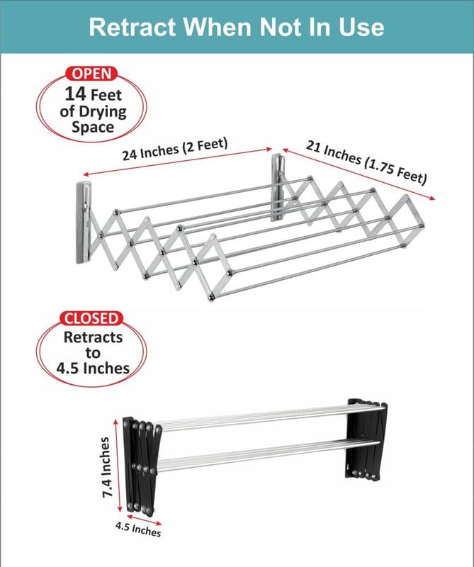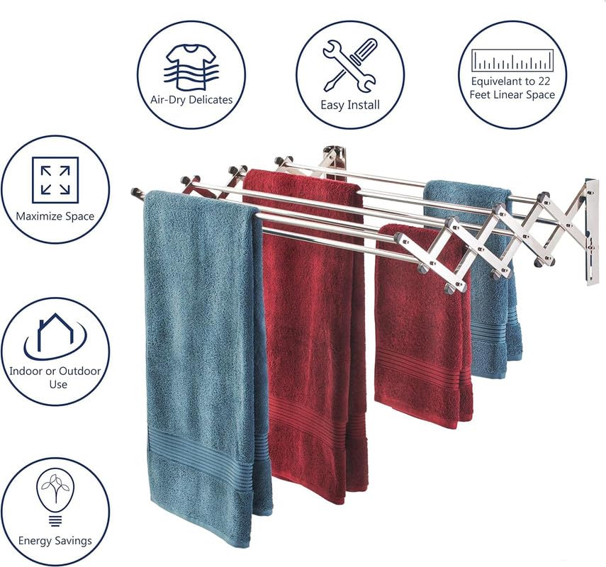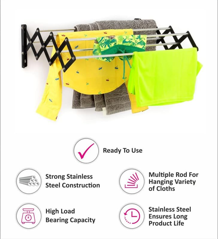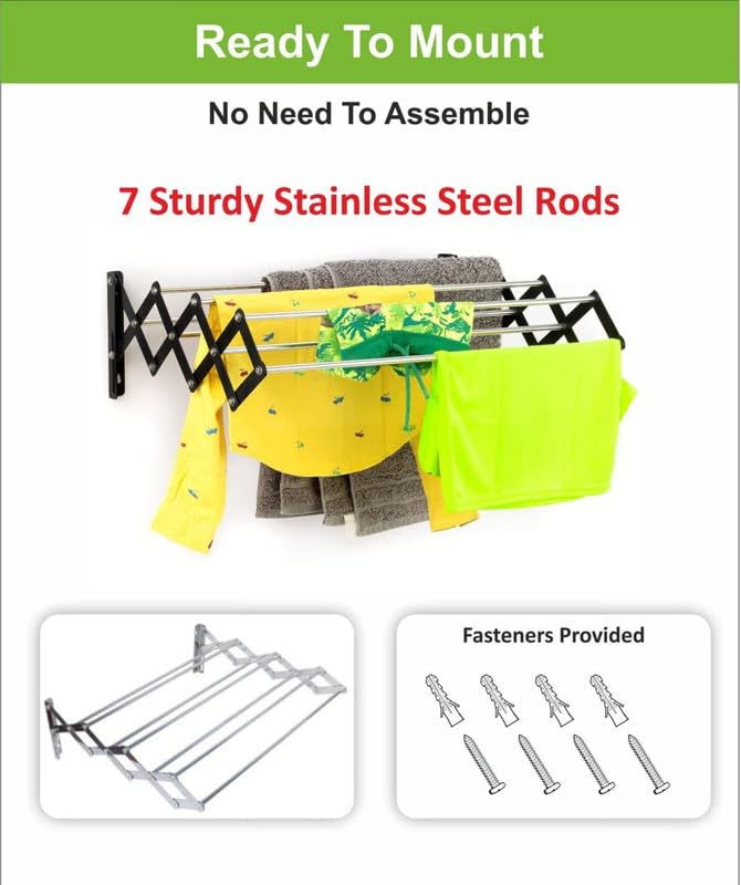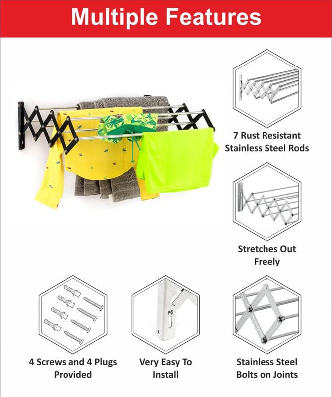 In Stock☆ Heavy duty rust-free stainless steel construction ensures durability and long-lasting use ☆ Space-saving foldable design easily mounts on walls for efficient use of space ☆ Versatile for indoor an ... oor and outdoor use, suitable for drying clothes, towels, and more ☆ Collapsible feature allows for easy storage when not in use ☆ Includes all necessary hardware for quick and secure installation ☆ Can be used in various locations including balconies, bathrooms, and laundry rooms ☆ Supports heavy loads while maintaining structural integrity ☆ Easy to clean and maintain, ensuring a hygienic drying environment ☆ Ideal for small spaces, maximizing utility without compromising on space ☆ Stylish and modern design complements any home décor Read more