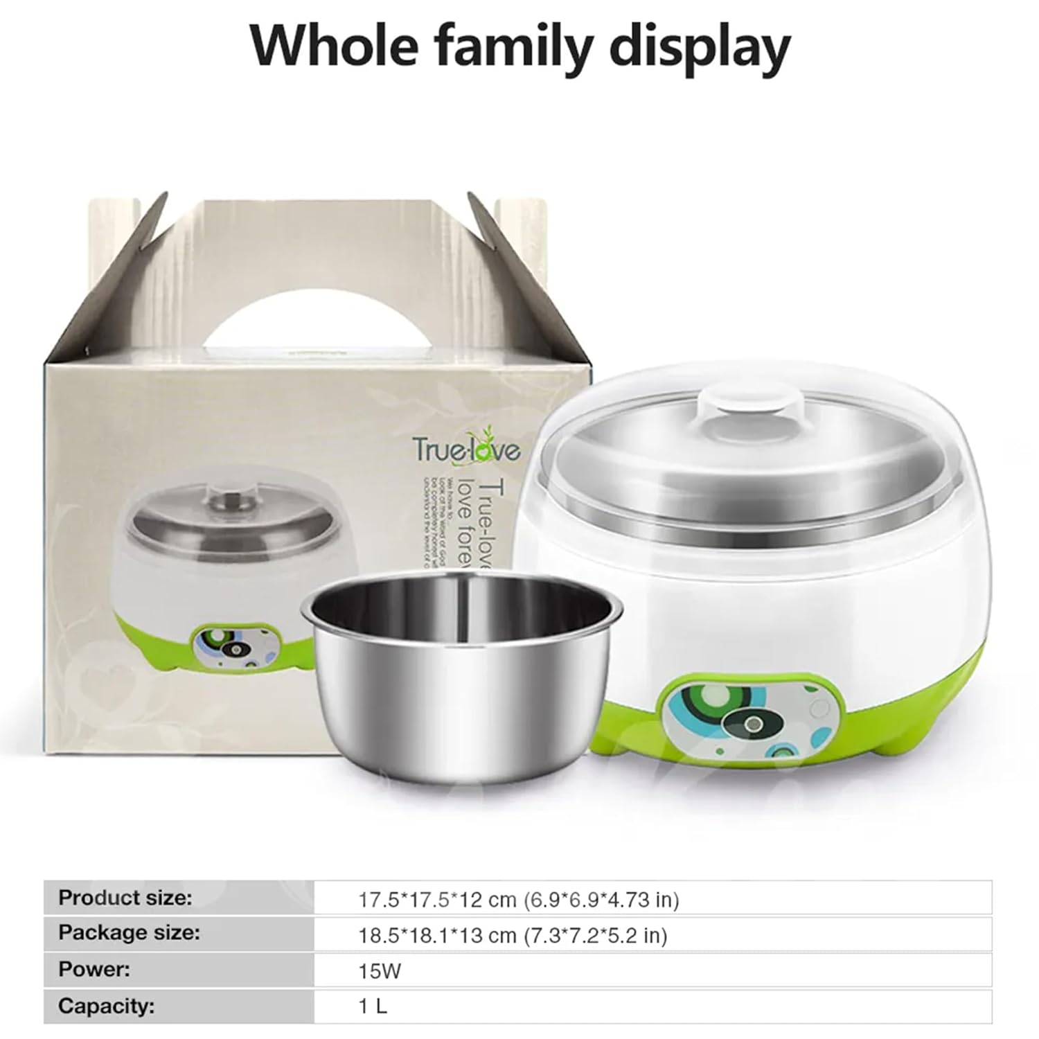 The curd machine can be easily used by simply, pour the 800~1000ml pure milk into stainless steel inner container, add 2-3 tablespoon of fresh plain yogurt or 1 gm of yeast, switch on t