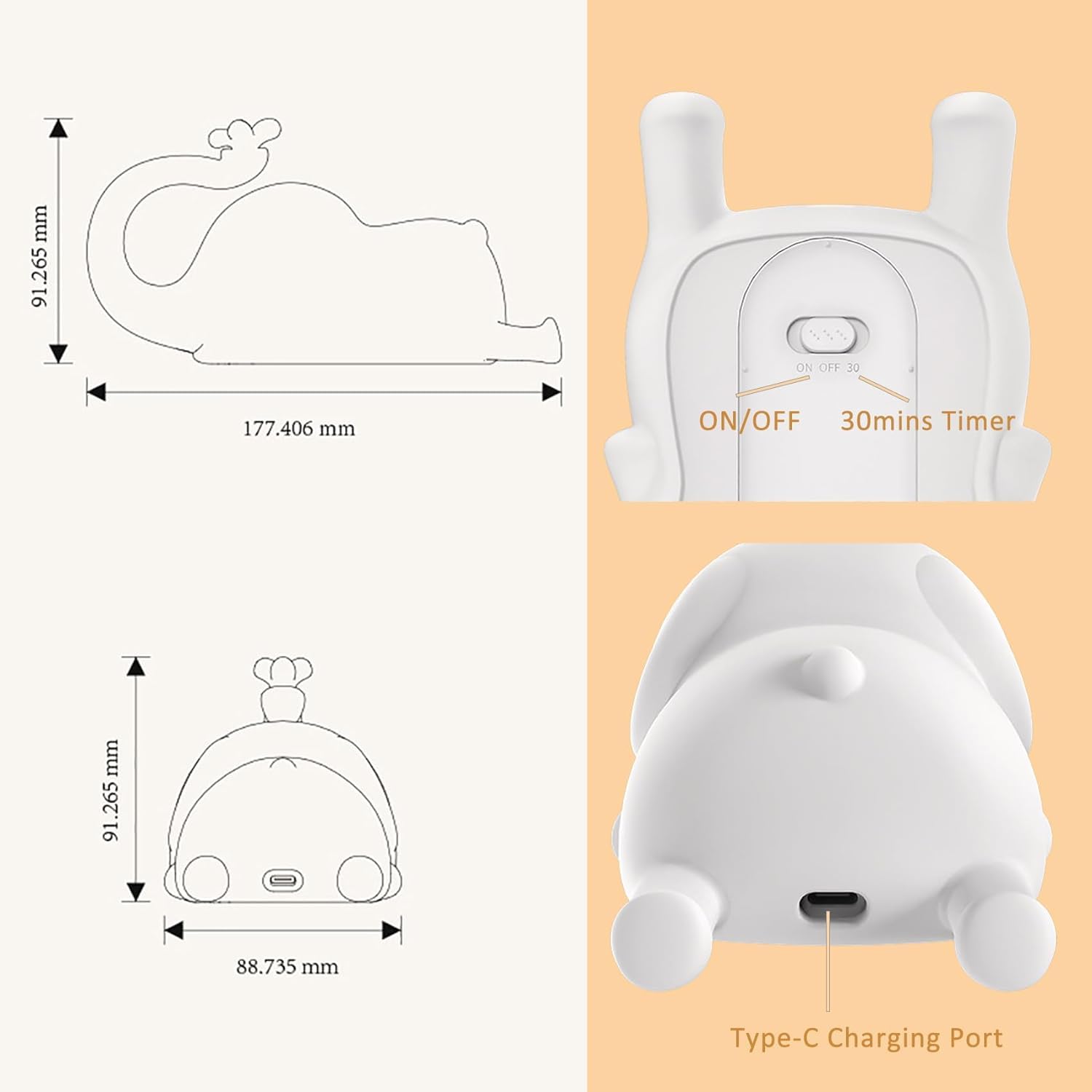 Silicone Night Lights -100% baby safe BPA-free material, fun and friendly. Kids can play with it and don’t worry about breaking it! A child can place the night light near their bed and accompany them.