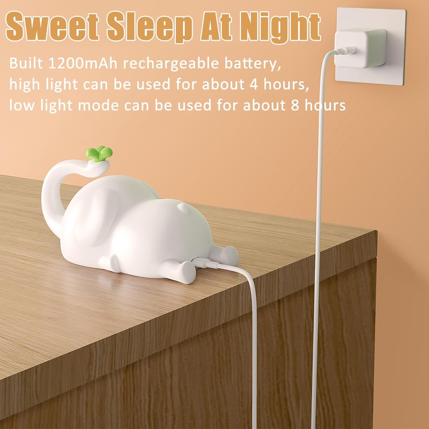 Rechargeable Nightlight Kids Room Decor The lamp can be charged by micro-USB. After fully charged, the standard warm light mode can last for about 8 hours, and the multi-color lights can be used for about 6 hours in breathing mode.