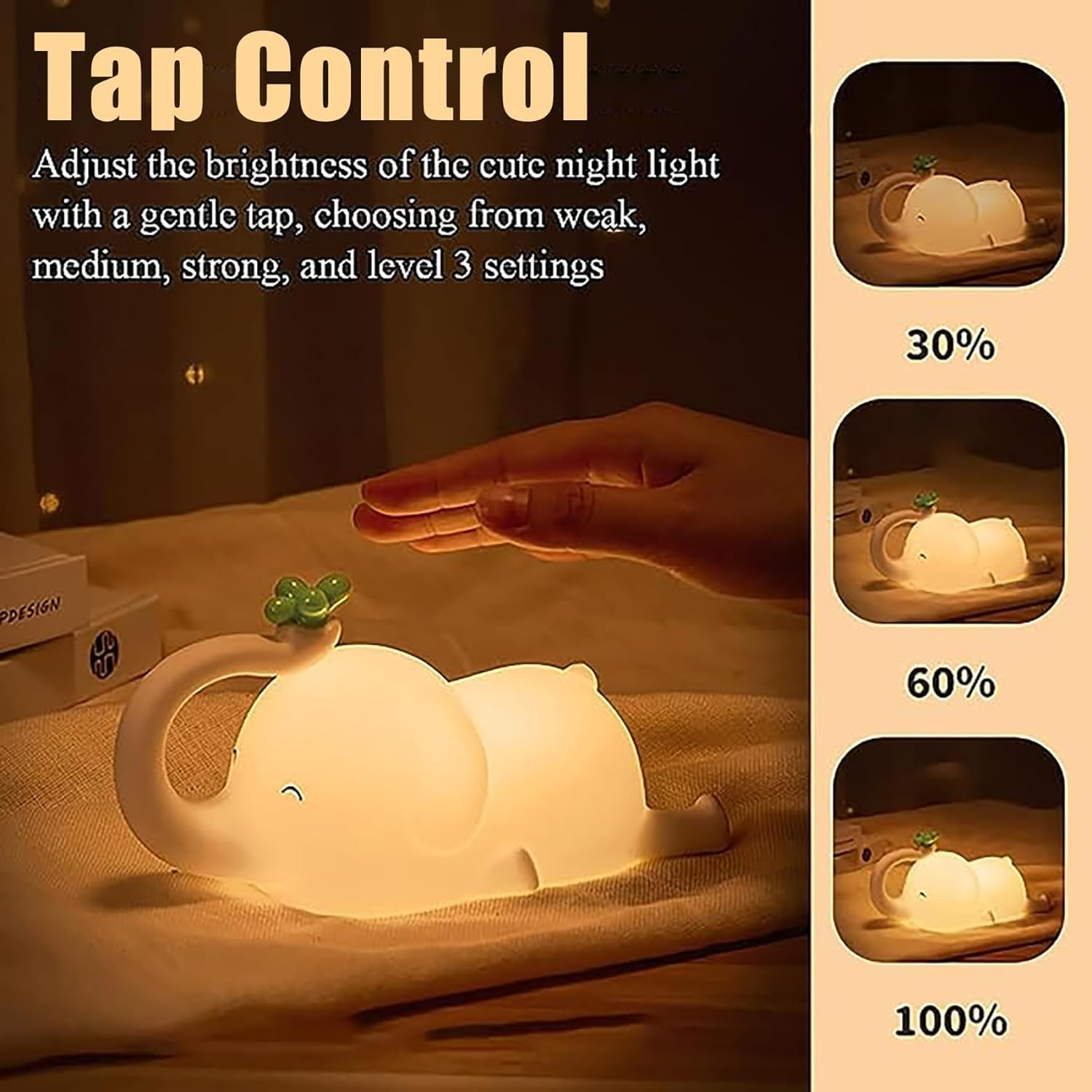 Kids Night Light,Rechargeable Cute Lamp with 3-Level Brightness,Silicone LED Elephant Night Lamp,Kids Night Lights for Bedroom,Baby Nursery and Study Desk-Christmas Night Light (Elephant)