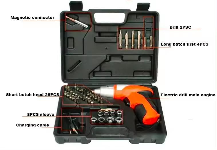 In Stock[HIGH TORQUE & VERSATILITY] - 16.8V Cordless drill machine for mome use with 26 torque settings, 3/8'' all-metal chuck, and 550 In-lbs max torque. Two variable speed options provide precise control fo ... r drilling machines, fastening, and screw removal tasks across various materials. [EXTENDED WORK TIME & FAST CHARGING] - The 2.0Ah Li-ion batteries in this drill machine offer reliable power with 1.5-hour fast charging, saving 50% more time. Ideal for continuous use in your tool kit for home use multipurpose projects with a power indicator for easy monitoring. [COMPLETE TOOL KIT FOR HOME USE] - This 105-piece tools box Kit includes everything you need: a powerful 16.8V drilling machine, fast charger, drill bits, screwdrivers, pliers, sockets, measuring tape, bubble level, and more. Perfect for DIY handcrafts, home tools, and even as carpenter tools of all types. [DURABLE & ORGANIZED TOOL BOX FOR HOME USE] - Tools are securely housed in a sturdy Tools Box Kit, keeping them safe, clean, and easy to find. Perfect for both first-time DIY enthusiasts and seasoned professionals, ensuring your tool kit is always organized and ready. Read more