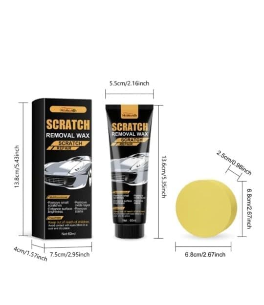 In StockProfessional-Grade Scratch Repair: Formulated to restore your vehicle's paintwork by effectively removing minor scratches, scuffs, and blemishes, leaving a smooth, polished finish. Premium Polish ... ing Wax Formula: Enriched with a high-quality polishing wax, it not only repairs scratches but also enhances shine and provides a protective layer for long-lasting results. Complete Kit with Accessories: Comes with a user-friendly wipe and sponge for effortless application and precise polishing, making it ideal for all vehicle owners. Safe for All Paint Types: Designed to be gentle on vehicle surfaces, this scratch remover works on metallic, solid, and clear coat paints without causing further damage. Multipurpose Use: Suitable for cars, motorcycles, and other painted surfaces, this versatile repair paste helps maintain the pristine look of your vehicles with ease. Read more