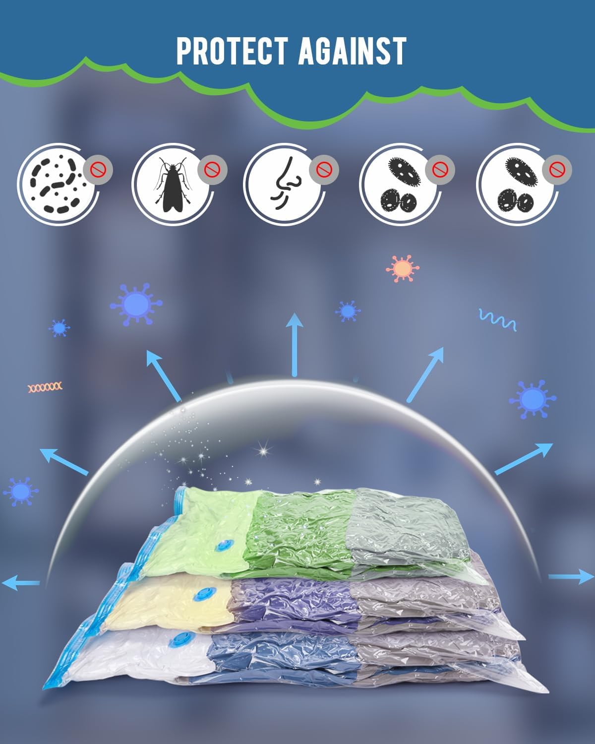 Perfect Protection: Made of a high-quality mixture of PA & PE and antimicrobial materials can keep air out and won't tear when being squeezed and Protect your stored items from dirt, dust, bugs, insects, odors, mildew, water and moisture