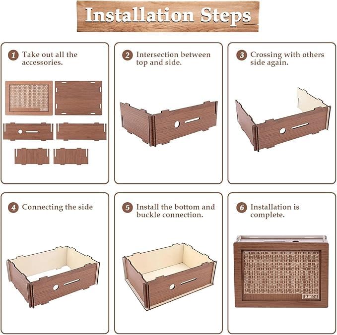 In StockEASY AND FUN TO USE By starting with our money box, you’re setting the foundation for a lifetime of good financial habits. It’s a small step that can lead to significant financial stability and suc ... success. Whether you’re a parent teaching your child about money or an adult looking to improve your saving habits, this money box is an invaluable tool. Wooden Money Box Motivation: motivates you to save money regularly as you have a specific goal in mind and can measure your progress directly. Discipline: helps develop discipline in saving as one becomes aware of how much money you need to save monthly to achieve the goal. Clearity: ensures overview and clarity, as you can see the current status of the saving process at any time. Reminder: Remind you to save money and can help you not forget about saving. Fun factor: fun and motivated, as you can enjoy every progress and every tick field. Reward: contributes to the reward as you can treat yourself to something after reaching the savings goal. Goal Orientation: helps you focus on a specific goal and achieve your financial goals better. Read more